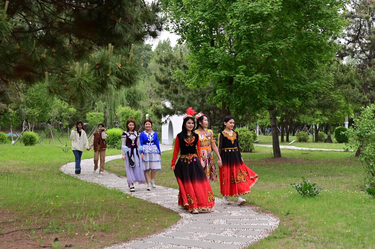 草长莺飞,春光明媚,正是吉大校园最美丽的时节,护理学院少数民族学生们身着民族特色服饰参加此次拍摄活动,记录他们在吉林大学的生活,定格校园里的美好瞬间。参加本次活动的学生包含维吾尔族、哈萨克族、藏族等民族,拍摄地点在吉林大学中心校区宋治平体育馆、清湖、鼎新楼、晨园等多个风景优美的热门打卡地点。学生们或嫣然浅笑,或翩翩起舞,或嬉戏追逐,青春的气息、明媚的笑容、别具一格的服饰,构成了一道靓丽的风景线。新民校区老摄影家协会的离退休老教师们认真调试摄影设备,将学生们的笑容一一记录,不时地交流着拍摄技巧和意见建议。一张张照片,留住了温暖与温馨,承载了团结与融合。