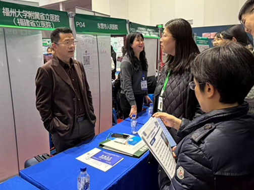 学院领导一行深入双选会现场,实地走访用人单位展位,与多家重点医疗卫生机构、康复中心及医学技术类企业代表进行了亲切交流。韩书记详细了解了用人单位的人才需求及岗位设置,并向优质医院积极推荐我院护理学、康复治疗学、医学技术专业的优秀毕业生。她表示,学院始终坚持“医教协同、产教融合”的办学理念,希望与用人单位在实习基地建设、人才培养、科研项目合作等方面进一步深化合作,共同培养符合行业需求的高素质应用型人才。