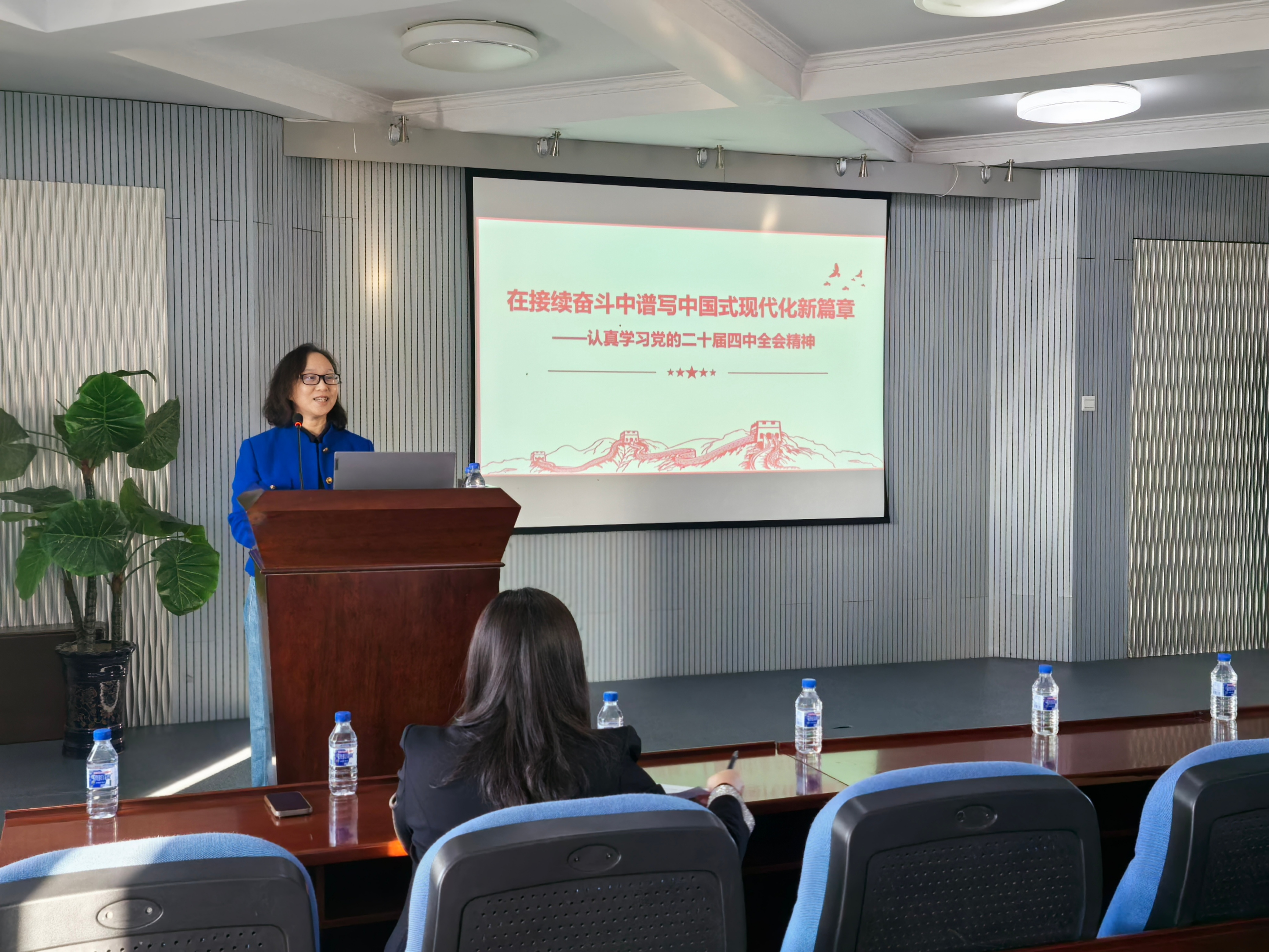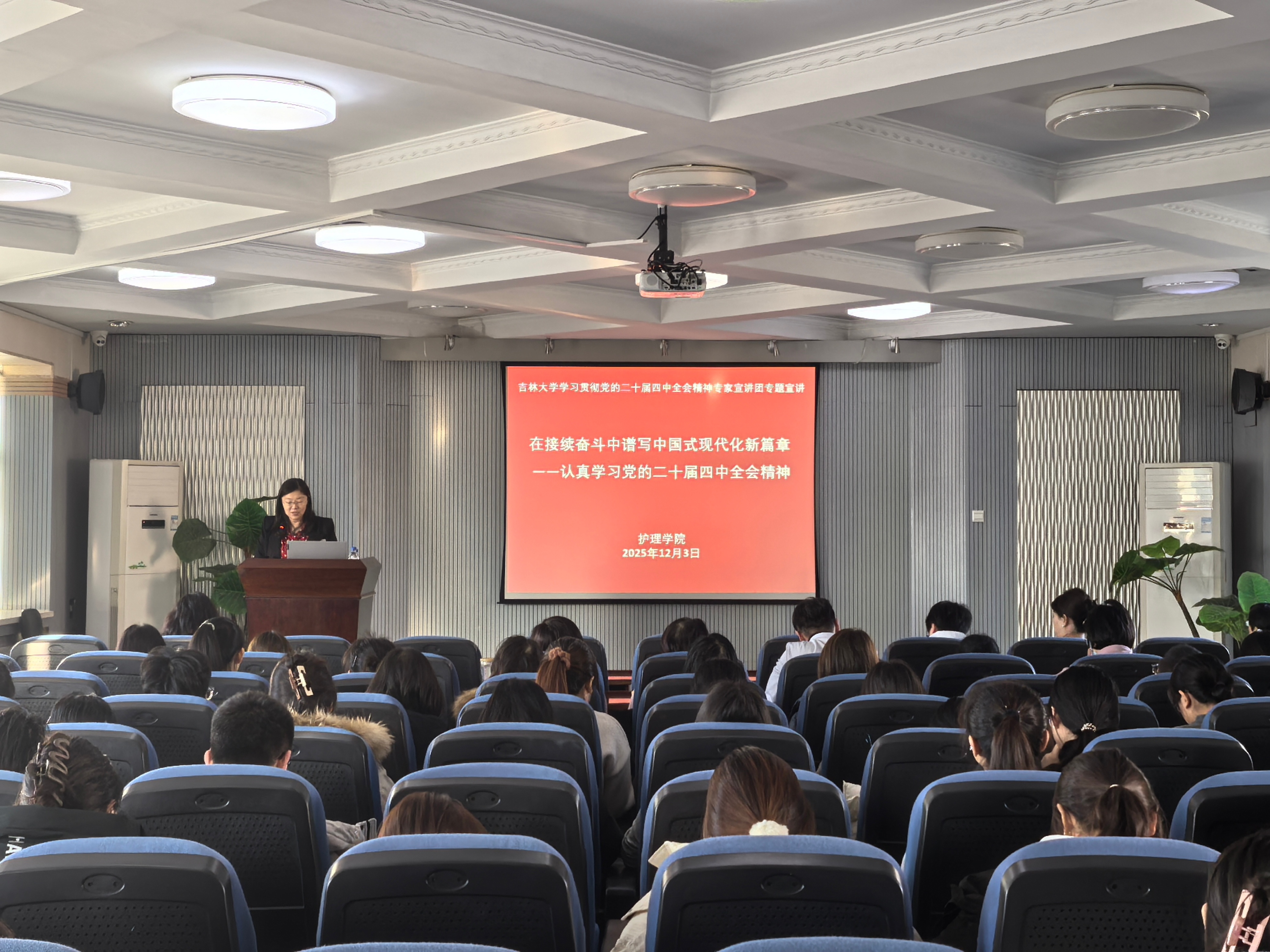 为深入学习贯彻党的二十届四中全会精神,切实把思想和行动统一到党中央决策部署上来,2025年12月3日,护理学院党委特邀“吉林大学学习贯彻党的二十届四中全会精神专家宣讲团”成员、马克思主义学院教授石瑛作专题宣讲。学院全体教职工、学生代表参加会议。宣讲会由学院党委书记韩月波主持。